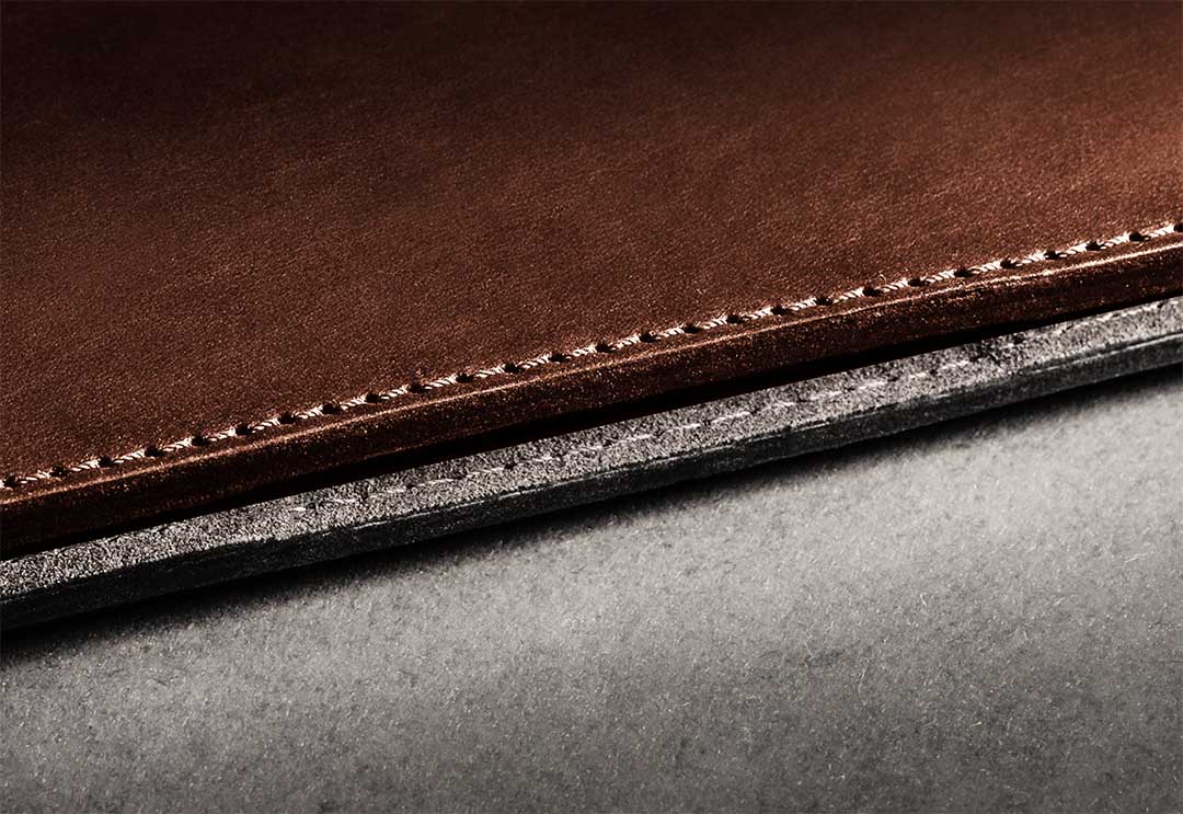 Hand-crafted layers, meticulously sewn to each other. Perfect stitching to weave the wallet together. As this leather ages, that shine is replaced with a matte finish, and the leather becomes softer with use.